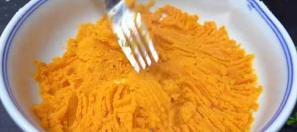 1、紅薯洗幹凈之後削去外皮,去頭去尾,改刀切成薄片,然後冷水上鍋蒸,蓋上蓋子,大火燒開,上汽計時蒸十分鐘,把紅薯蒸熟之後,再用叉子壓成紅薯泥,如果喜歡吃甜的,可以加點白糖用筷子充分的攪拌均勻。