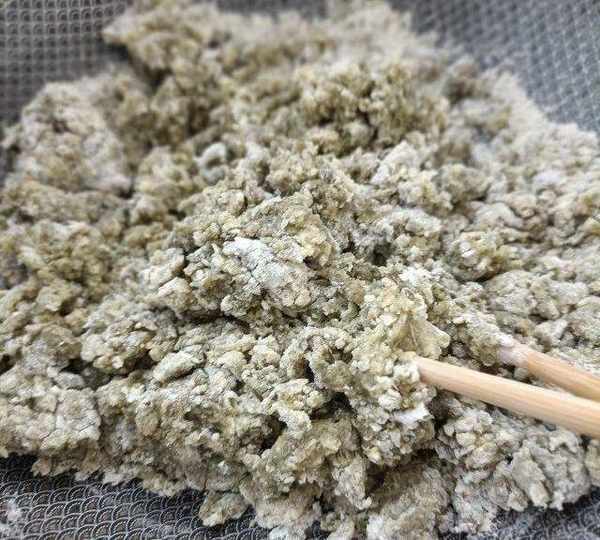 第8步、拌成絮狀。