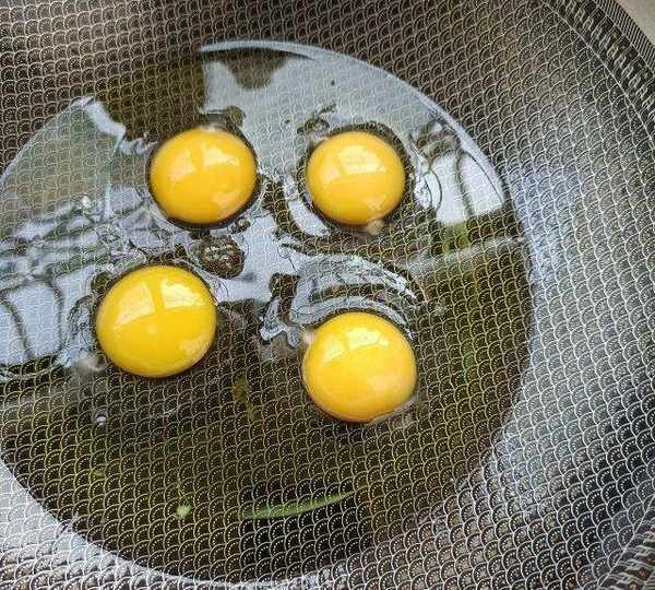第2步、放至溫熱打入雞蛋。
