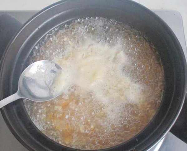 4將浮沫用勺子撇出。5煮至玉米香氣出,銀耳變得略軟關火。