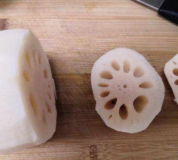 第2步、把藕的兩頭切開。