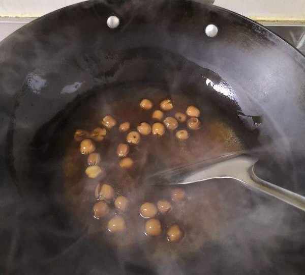 第8步、剛才的蓮子紅糖水放入鍋裡,加入少許水淀粉。