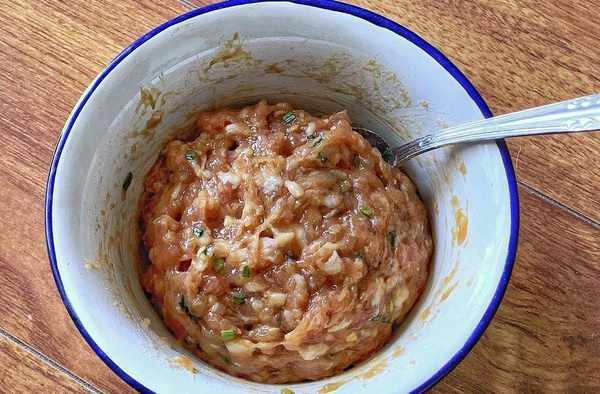 今天給大傢分享個肉餅的好吃法,不揉面、不搟面,全程手不用碰面,咬一口全是肉餡。盆中倒入400克面粉,180毫升的溫水放三克酵母,攪拌均勻,攪拌均勻後用400毫升的水和面,一邊攪拌一邊倒水,攪拌至粘稠狀態,一直攪到粘稠無顆粒的狀態,像這樣就可以瞭。蓋保鮮膜發酵一個小時,發酵至兩倍大,下面開始準備肉餡,切點生薑放在肉餡裡,先切絲,最後再切碎。