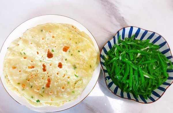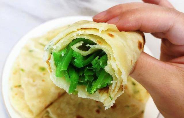 完瞭,再卷上炒好的素菜或者葷菜,就是美味又豐盛的一頓早餐。