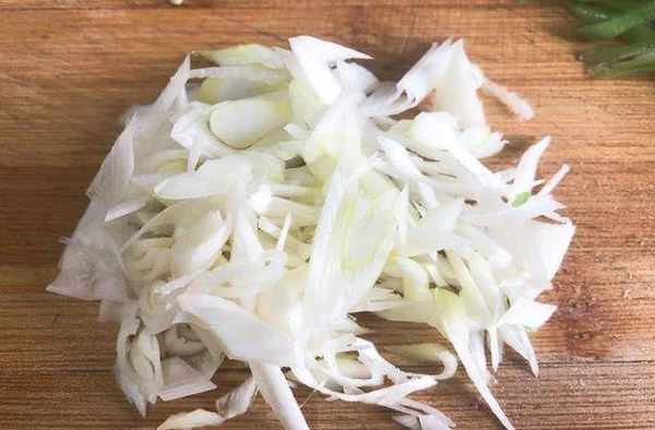 這是切好的蔥,因為今天沒蒜瞭,平時,還是用蒜炒豆角比較好一些。