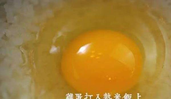 4.雞蛋打入熟米飯上。