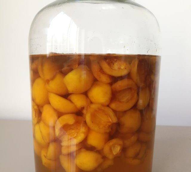 第6步、放入幹凈無水玻璃瓶中,一層冰糖一層果肉,倒入高度原漿白酒,密封、避光保存三個月,過濾去渣