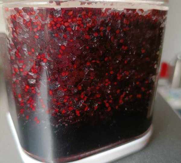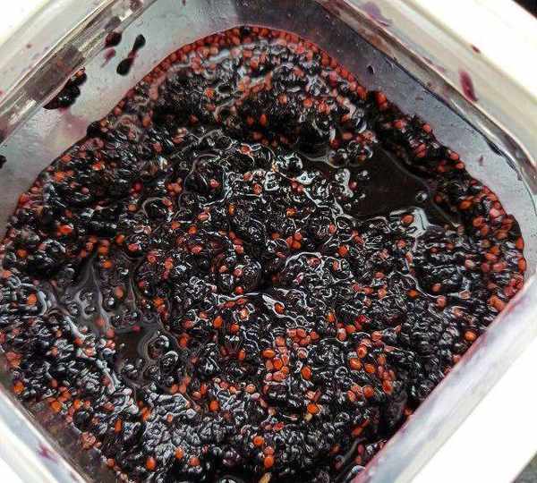 第20步、發酵10天的樣子,果子顆粒已經變暗。