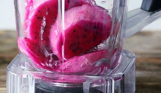 接下來將火龍果的皮削幹凈,放到榨汁機裡面,再用低速將火龍果榨成果汁。接著將事先準備好的果酒放到透明的杯子裡,杯子中要事先放好冰塊,果酒剛好沒過冰塊就可以瞭。然後再用勺子或者吸管引流,將火龍果汁慢慢的倒入酒裡面,倒入太快會混合在一起。