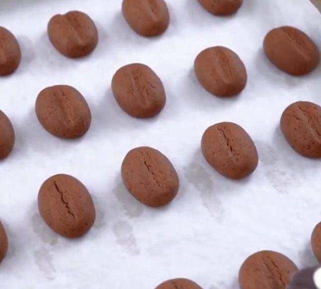 今天做一份長得很像咖啡豆的咖啡餅幹,酥得掉渣渣,入口會有很濃的咖啡香味。