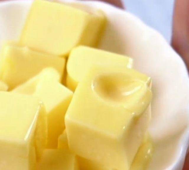 第1步、軟化黃油,能夠輕松按一個小窩的狀態。