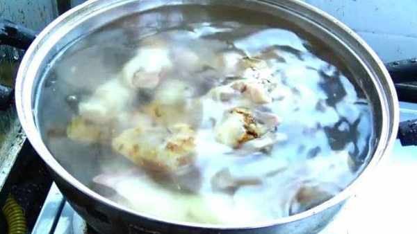 等燒好之後我們把豬蹄放進清水裡把燒黑的一部分刮掉,要不然會影響味道!