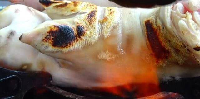 剛從市場上買回來的幾隻新鮮的羊蹄,剛開始聞羊蹄的味道感覺有很大的膻味,下面我們先把羊蹄用火燒一下,羊蹄為什麼要燒一下呢,目的就是為瞭消除羊蹄的羊膻味,等羊蹄燒好之後我們把燒好瞭的羊蹄刷幹凈!