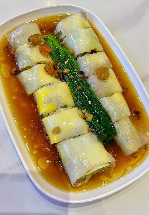 “牛坑腩蒸淋陳村粉”、順德方糕是我們點的主食,方糕香甜適口,更適合娃兒和老年人。值得一提的是在這傢餐廳用餐,能夠感受到廣東地方餐飲習俗。每一位食客就餐前,服務員都會送來兩壺水,一壺用於清洗餐具,一壺是帶有醇香味道的馬蹄養生茶,令人回味無窮……