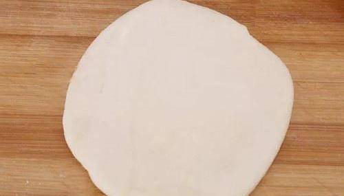 7、然後翻過來,收口朝下,稍稍壓扁,繼續搟開。