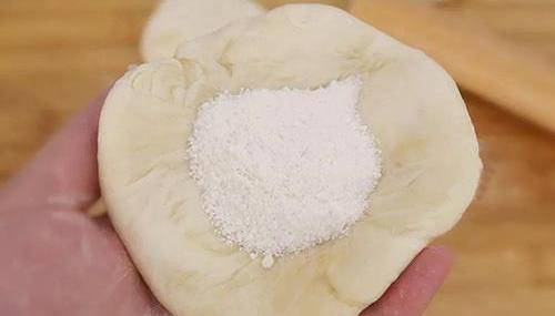 8、往中間放一勺餡料,收口。全部包好餡料,然後用保鮮膜蓋上松弛15分鐘。