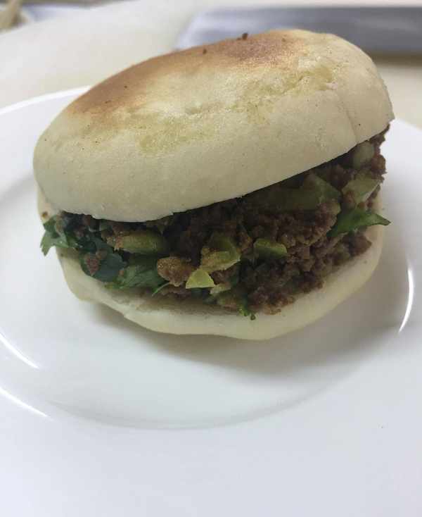 原料:富強粉、酵母、豬肉、尖椒、香菜、蔥花