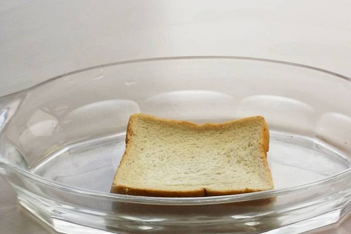 寶寶的早餐一定要溫熱,所以吐司先要加熱,如果傢裡沒有面包機,也可以放在平底鍋內開小火進行加熱,註意不要放油哦!