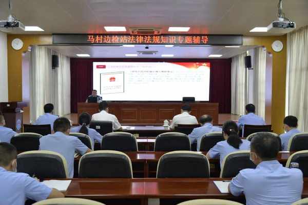 7、馬村邊檢站開展法律法規知識專題輔導為深入學習貫徹習近平法治思想,推動主題教育深入開展,5月18日上午,馬村邊檢站組織公職律師、執勤一隊民警李治敏同志,以“規范執法用權 創建平安口岸”為主題,開展瞭第一期法律法規知識專題輔導授課,通過培訓進一步增強民警法治思維,更好地將習近平法治思想運用到實際工作中。