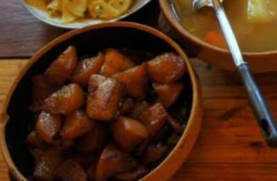 媳婦還特意做瞭做瞭一道玉米面蘿卜湯,媳婦說吃完飯菜喝一碗這樣的湯,能解膩。媳婦上完最後一道湯,領導說:這麼好喝的湯,喝不完怪可惜的,給我打包起來,我帶回去慢慢喝。聽老板說要打包,我和媳婦都懵瞭,今天媳婦做5菜1湯招待領導讓我倍兒有面子。美食,隻要自己喜歡就夠瞭,別人怎麼看不重要,那麼今天給大傢介紹的,隻要大傢喜歡,這道菜就加上瞭美食的標簽。