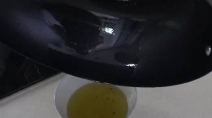 油倒進碗裡放涼.