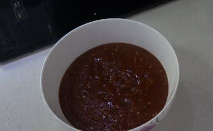鍋裡倒油,把打好的料汁放進鍋裡炒香.