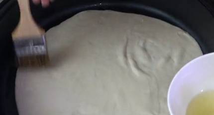 面餅上倒一點蔥油,然後抹均勻.再卷起來