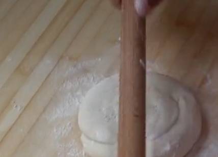 取一個劑子,把它揉成饅頭的形狀。然後再搟成大餅.