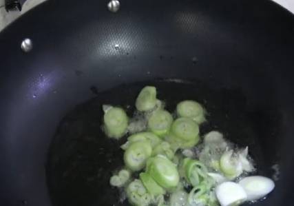 把蔥炸出香味.蔥炸至發黃後撈出.