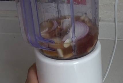 再做點醬,料理機裡放上3勺豆瓣醬.2勺甜面醬,蔥,蒜,洋蔥全部放進去.再倒上50克水.打碎