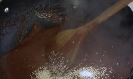 炒香後倒入小半碗水,燒開.