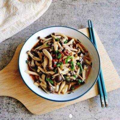 2、鍋中燒水,加入一勺白糖,水開後把蘑菇倒下去焯水,再把胡蘿卜絲也倒下來,焯燙30秒,撈出過涼冷卻,擠掉水分。放在大碗中,加蒜末,幹辣椒,蔥段、花椒籽,熟芝麻增香,再潑上熱油激發出香味,調味加適量的食鹽,白糖提鮮,生抽,陳醋,辣椒油,香菜、黃瓜、花生米,抓拌均勻,吃又解膩的涼拌蟹味菇就做好瞭。