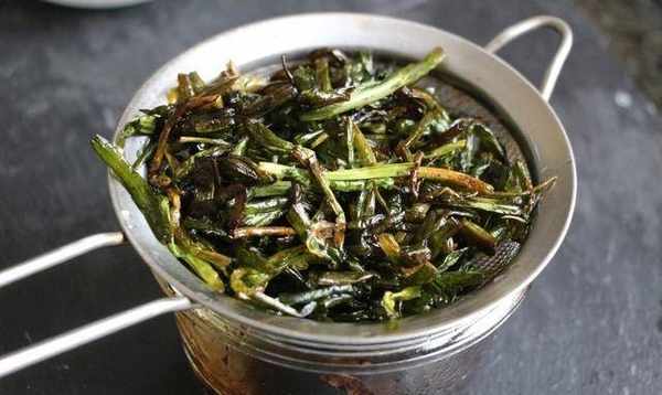 1、大蔥去皮,切成5厘米左右的段。隻需要綠色部分,白色部分留作他用。