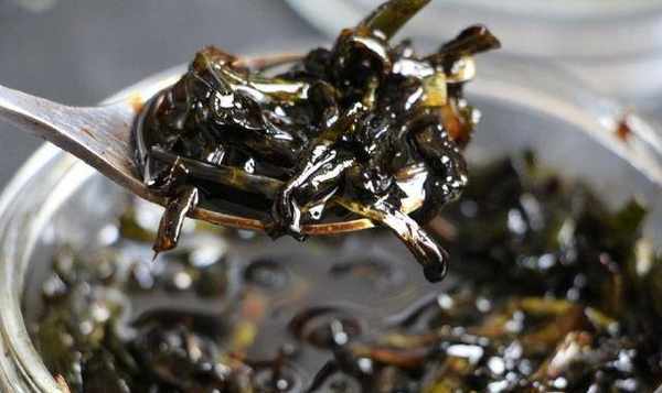 9、面條中加入黑蔥油醬,拌勻,放上炸好的蔥油,美味的地道蔥油面條就做好瞭,很香!