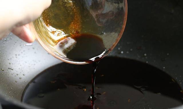 5、將調味好的醬汁倒入鍋中,加入蔥油拌勻,繼續小火加熱。