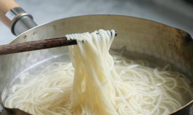 8、準備一鍋水,加少許鹽,將面條放入沸水中煮熟,瀝幹水分,盛入碗中。