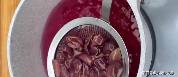 2、然後,先在鍋裡倒入適量的水,放入剩下的葡萄皮,大火燒開後,分別撈出裡面的渣(皮)(棄用),同時。過一段時間後,放入清水中,紅汁中加入少量冰糖和15克白果凍(或果膠,是做果凍的原料),攪拌至完全溶解,然後轉動它們。立即遠離熱源。