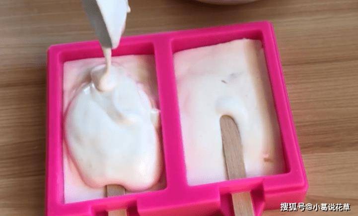 1、先準備奶油、果醬、酸奶。將200克淡奶油放入碗中,加入15克白糖打發,打發約5分鐘,打至濃稠,然後加入酸奶,攪拌均勻,再加入一勺菠蘿醬,拌勻備用。2.準備一個冰淇淋模具,取一半的奶糊,然後插入冰棍棒,然後裝滿模具,蓋上蓋子,放入冰箱冷藏至少4小時。