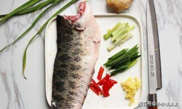 1、黑魚切半,魚骨和魚頭切掉,隻留一半魚身。魚挺大的,隻有一半的魚是500克。青蒜斜切,青蒜白色部分切片,辣椒切半,去籽切小塊,薑剁碎。