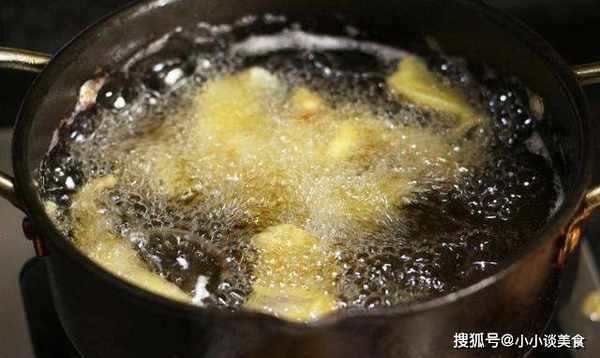 5.在油炸鍋中將油加熱至50%至60%的熱度。將筷子插入油中後,會出現小氣泡。打開中低熱量。把魚片切塊,或者切塊。炸至表面堅硬酥脆,顏色金黃。黃色,檢查幹油。