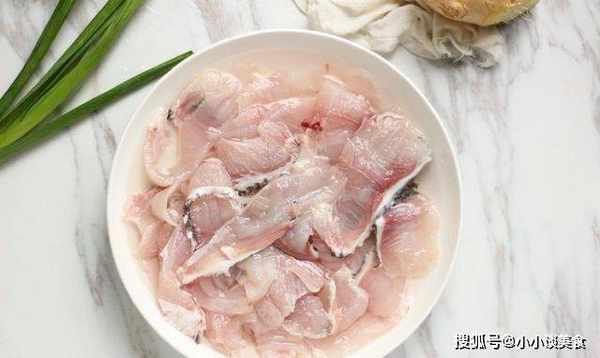 3、切好的魚片用水沖洗幾遍,去掉粘液,這樣在鹵汁裡更入味。然後將魚片在水中浸泡一會兒,以保證魚的新鮮度。