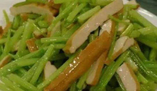 芹菜炒香幹:香幹切細條;芹菜切段,開水焯芹菜,撈出過涼水。鍋裡加一小勺食用油,加入香幹煸炒,加入芹菜煸炒,放入鹽,白糖再翻炒一下。加入味精淋上香油即可出鍋。芹菜炒香幹是用芹菜制作的一道傢常菜。芹菜的功效芹菜是一種抗氧化劑,常吃芹菜,尤其是吃芹菜葉,對預防高血壓、動脈硬化等都十分有益,並有輔助治療作用。