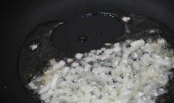 4.蔥花放入油鍋中爆香。