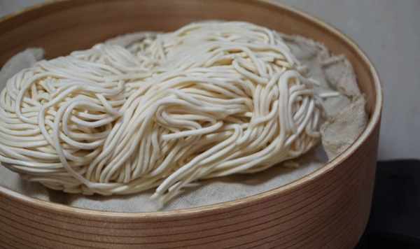 2.將生面條放入蒸籠中,中火蒸熟。
