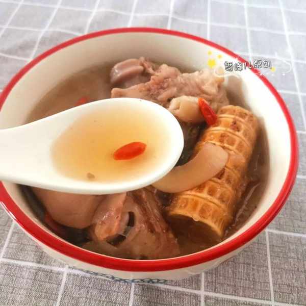 這樣的湯天冷了最適合,不但我們用到的配料是很滋養身體的,猪蹄常吃可以美容養顏哦,這樣做成湯鮮美好喝,暖身又暖心。