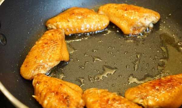 4.熱鍋註油,油熱後下入焯過水的雞翅,炒至四周微黃。