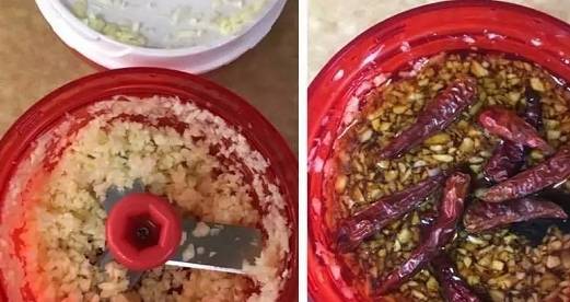 2、如果喜歡辣一些的,可以將辣椒和蒜泥一起打碎;