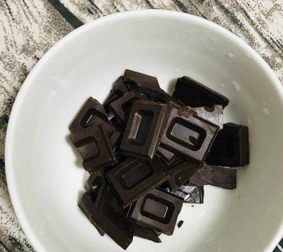 第2步、巧克力扳碎到碗裡。