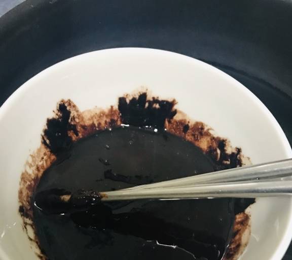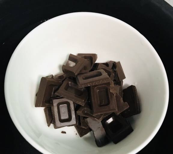 第3步、鍋裡放水隔水蒸融化。