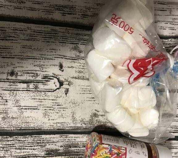 第1步、棉花糖和糖果針。